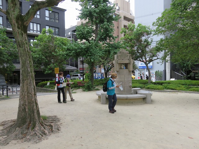 猛暑の続いたこの8月最後の日曜日、風もあり、少し暑さも和らぎ、歩きやすい日となりました。今回は、時計を100年程戻して、歴史を振り返るウオークをしました。大正14年(1925)、日本でラジオ放送が開始されましたが受信機がまだ高価なものであり、直ぐには一般家庭に普及せず、街頭ラジオとして「公共のラジオ受信機」が設置され、近所の人が集う場とされていました。京都市内には今でも、8つのラジオ塔遺構が公園に残されており、今日は代表的な公園を5ケ所巡りました。JR・京都駅を出発し、最初に東洞院通りにある御射山公園を訪ねました。昭和初期に公園に隣接する日彰小学校(現在の高倉小学校)の校庭に設置されていたようで比較的新しいものに見え噴水のような見た目で公園に溶け込んでいました。次に京都御苑を過ぎ智恵光院通りにある橘公園を訪ねました。球技ができるグランドの奥の片隅にひっそりと建っていました。次に向かったのが船岡山公園。船岡山の手前での誘導員の指示に従って進むと、長く続く石段の登り道。疲れがどっと出て、やっと頂上の野外ステージについたら、ラジねえの指導によるストレッチとラジオ体操が行われていました。疲れた足の筋肉を解すためにさっそく、体を動かしました。リラックスして、船岡山公園にあるラジオ塔遺構を見ることを忘れて、次の北大路通りに向かいました。北大路通りを東進し、堀川通りを北に進み、紫野柳公園に到着。置き時計のようなフォルムで、当時としては異色のデザインのラジオ塔遺構を見ることができました。最後に、京都府立大学近くにある橘公園を訪ねました。結構モダンな形で、側面に、旧NHK京都放送局のコールサインであった「JOOK」と表記された腐食した銘板が貼られ、歴史を感じました。直線コースが多く、実態よりも長く感じたコースでしたが、ちょっと変わった京都の歴史を歩くことができ楽しい一日となりました。