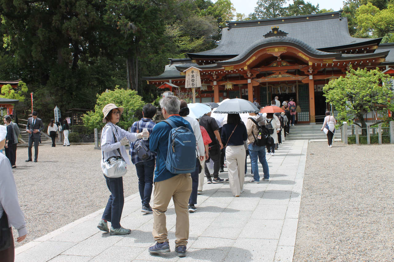 長岡天満宮本殿参る長蛇の列